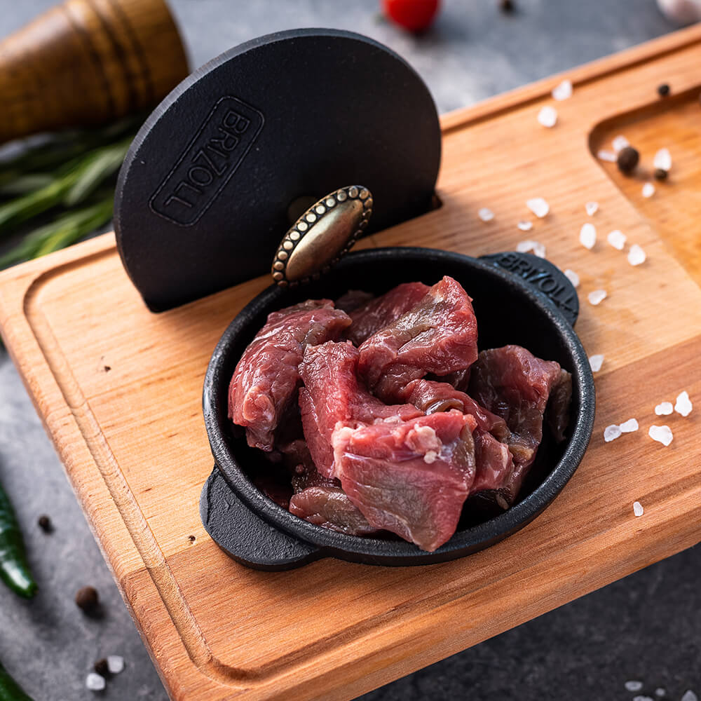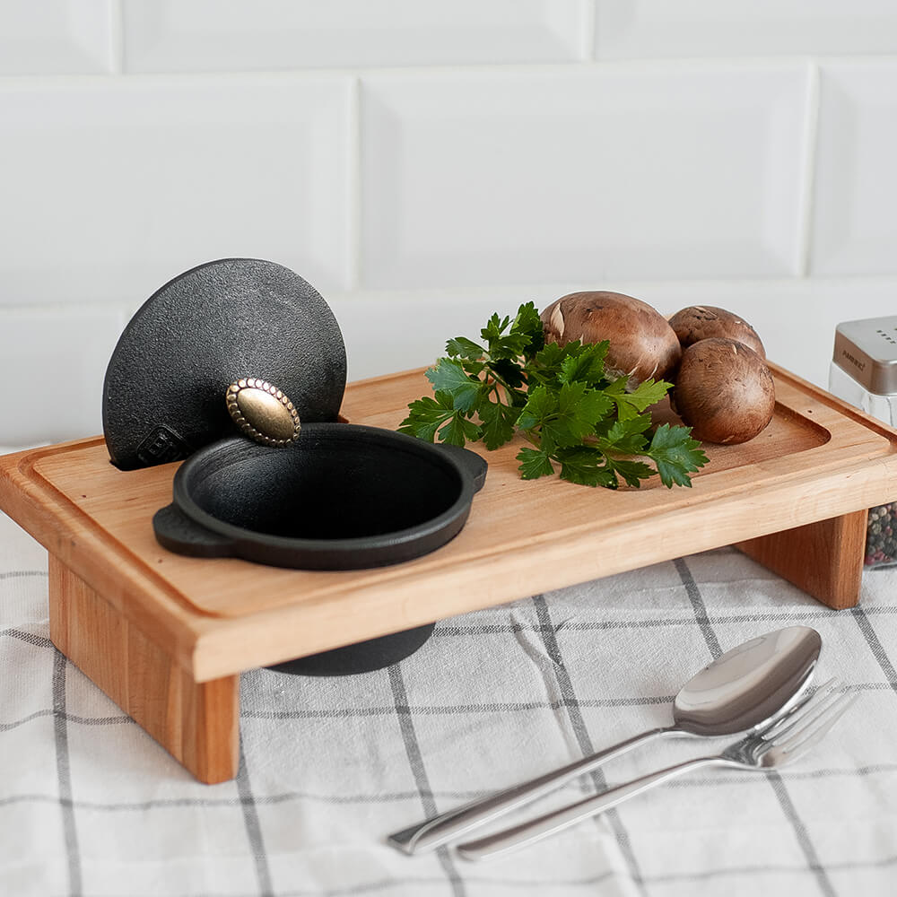Чугунная сервировочная кастрюля BriZoll HORECA, 300 мл, с деревянной подставкой.