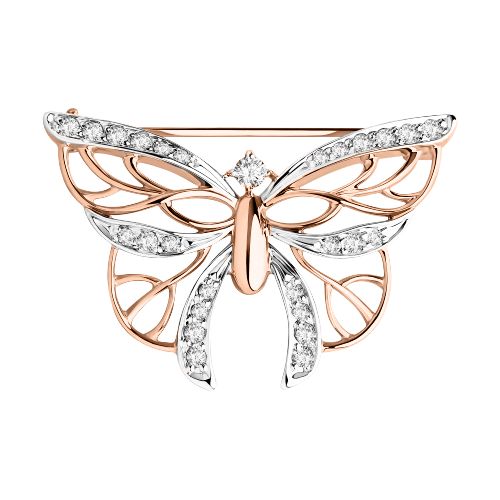 Брошь "Бабочка" из красного золота 585 пробы с цирконием
