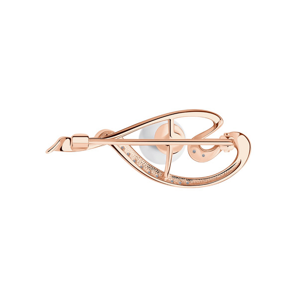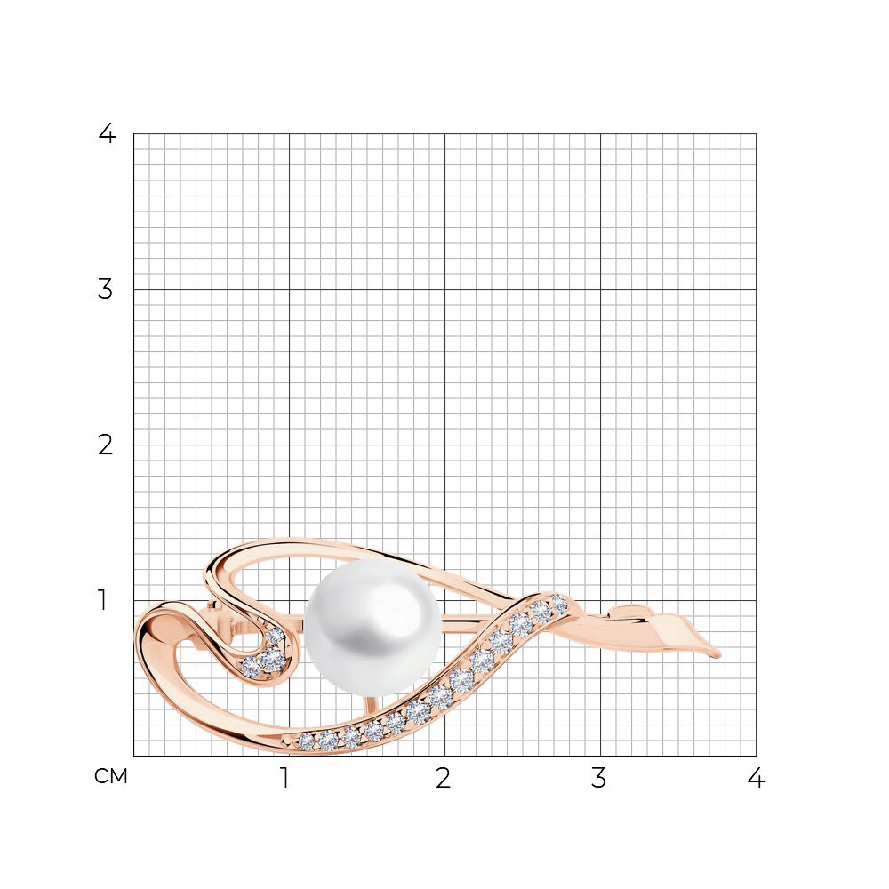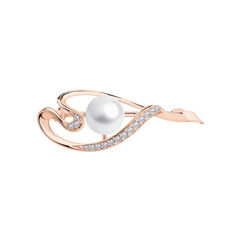 Брошь из позолоченного серебра 925 пробы с жемчугом и фианитами