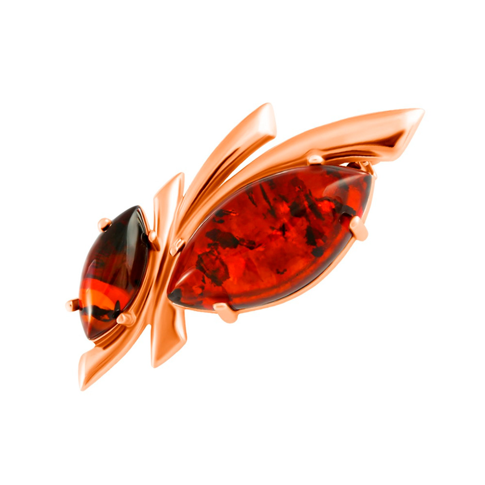 Брошь из позолоченного серебра 925 пробы с камнями янтаря красного цвета