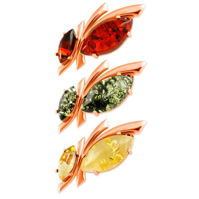 Брошь из позолоченного серебра 925 пробы с камнями янтаря трех разных цветов на выбор