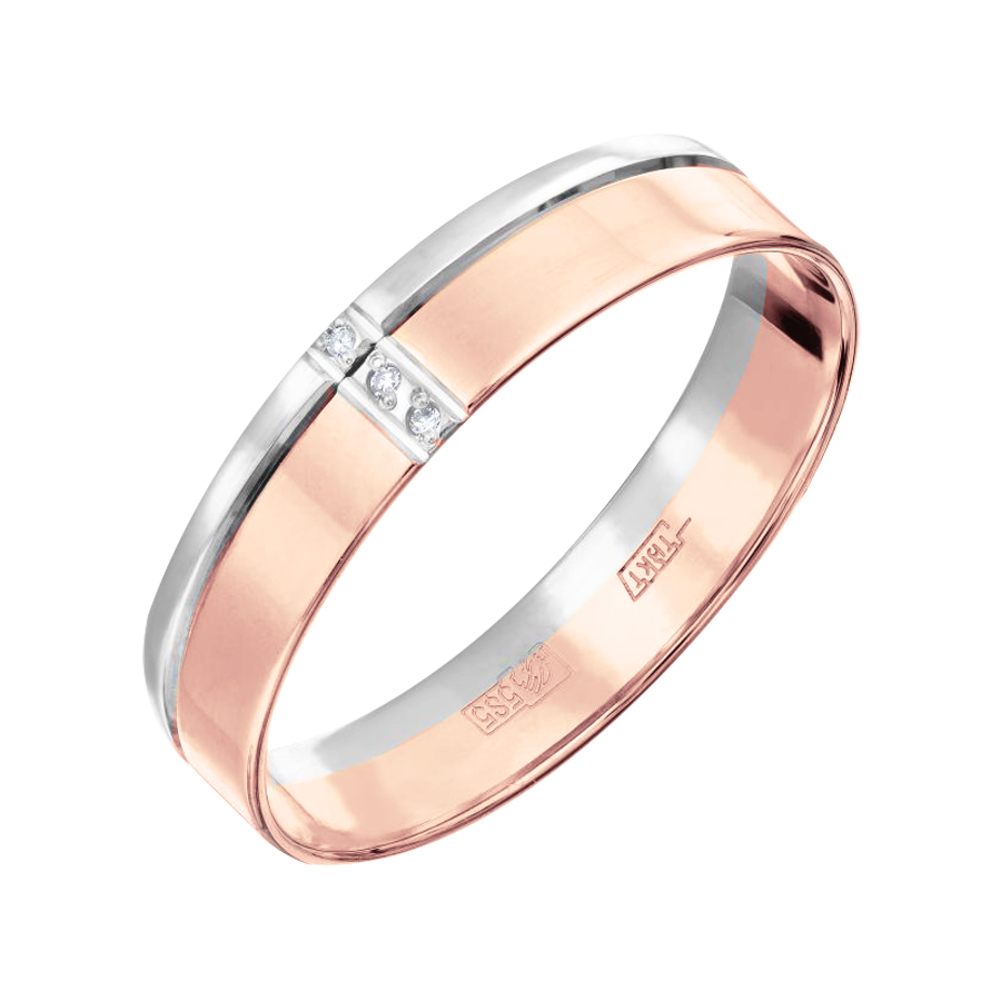 Обручальное кольцо из красного и белого золота 585 пробы, с 3 бриллиантами / цена за 1 кольцо