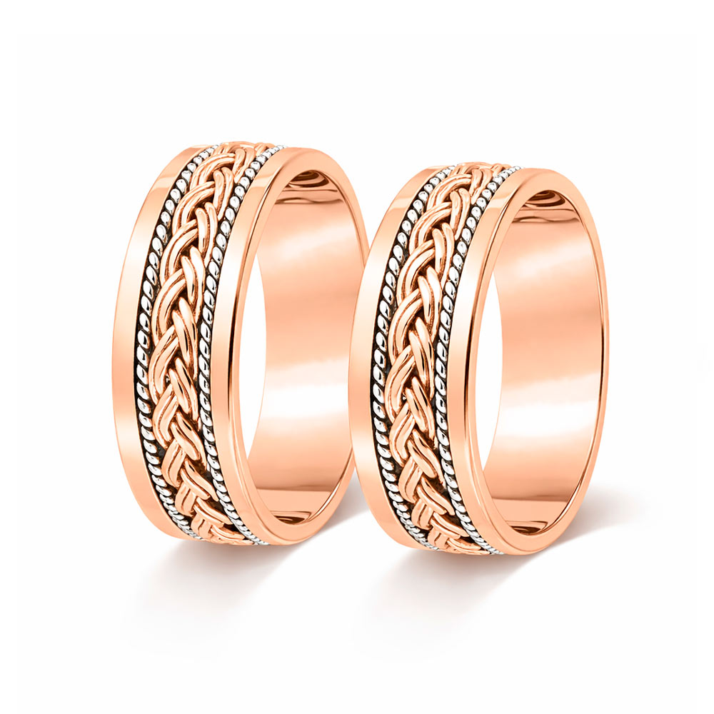 Обручальные кольца из комбинированного золота 585 пробы, ширина ≈ 7,0 мм