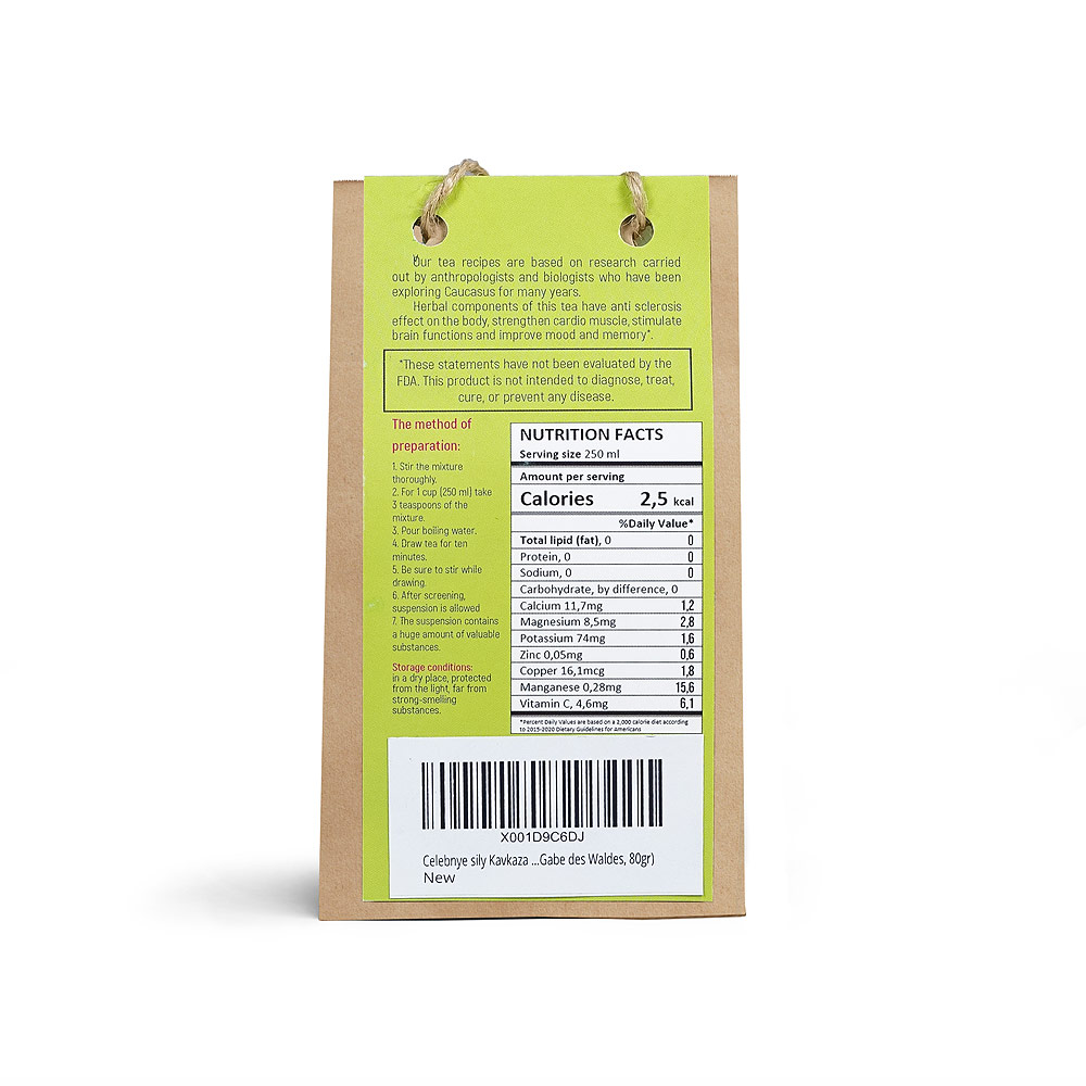 В состав "Дары леса" входят плоды и травы растений, которые обитают в среднегорных и высокогорных лесах и на опушках этих лесов. Жители гор издавна питаются плодами боярышника и горного шиповника, заваривают почки сосны, получая ароматный и полезный напиток. Мы опросили несколько десятков жителей лесного пояса Северного Кавказа и узнали, что в каждой семье, где высоко ценили и часто пили чай из трав и плодов горных лесов, были долгожители. Наши научные исследования подтвердили пользу традиционных продуктов горного леса и нами был разработан свой состав "Дары леса". Мы решили измельчить плоды шиповника и боярышника до такого размера частиц, чтобы все полезные вещества извлекались за 10-15 минут заваривания, так как современному человеку некогда ждать 10-12 часов пока заварится цельный плод боярышника или шиповника. Исследования подтвердили извлечение полезных веществ из этих плодов в чай.Особенности продукта: