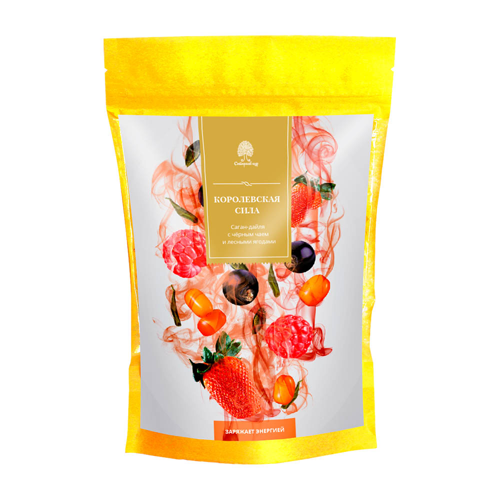 Линейка чайных напитков «Королевская сила» — это 100% природной энергии. Коллекция состоит из 7 уникальных сочетаний. Растение саган-дайля — это основной компонент, который сочетается с сибирскими ягодами и травами. В переводе с бурятского название «Саган-дайля» означает «продлевающий жизнь». Согласно легенде воины, возвращающиеся с победой, втыкали свои копья в склоны Саян, чтобы отдать силу земле. Через некоторое время на этих местах появилось растение, способное наполнять человека силой и здоровьем. Напиток из этого легендарного растения оказывает тонизирующее действие, обладает омолаживающим эффектом и снимает усталость и нервозность.Состав: черный чай цейлонский, лист саган-дайля, ягоды (клубника, чёрная смородина, малина, облепиха).
