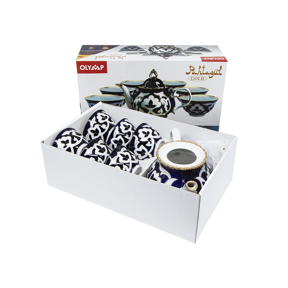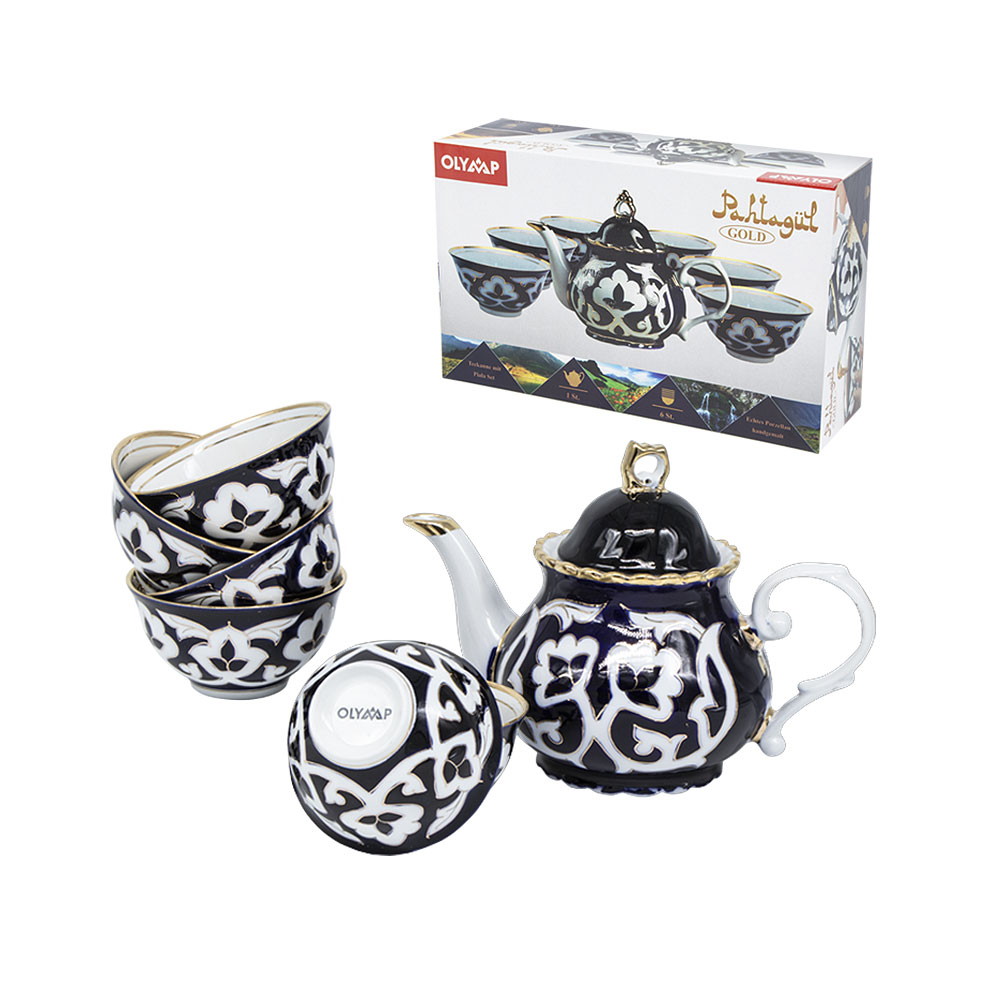 Узбекский чайный сервиз "Пахта Гул" 7 предметов - (Чайник 1,0 литр + 6 пиал)