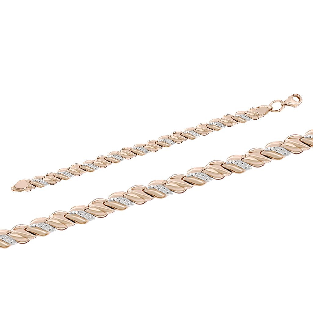 Charmantes Armband, Russisches Rotgold 585, rhodiniert, mit Diamant-Facetten, Breite ca. 7 mm, Länge 20/ 20,5 cm, Gewicht in 20 cm ca. 8,19 g. 20 cm