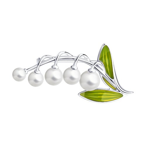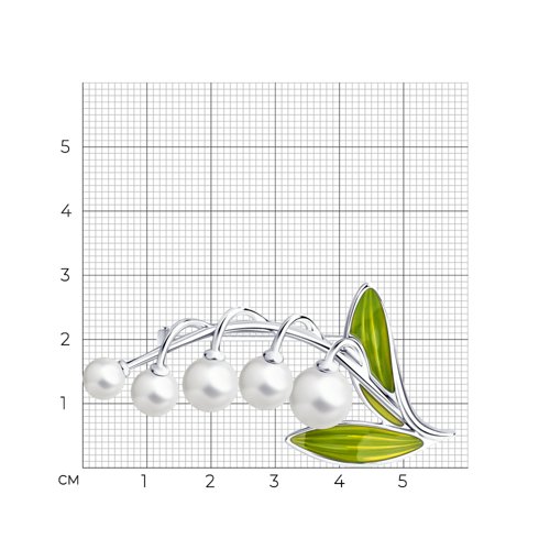 Брошь Ландыш из серебра 925 пробы с жемчугом и эмалью от Diamant