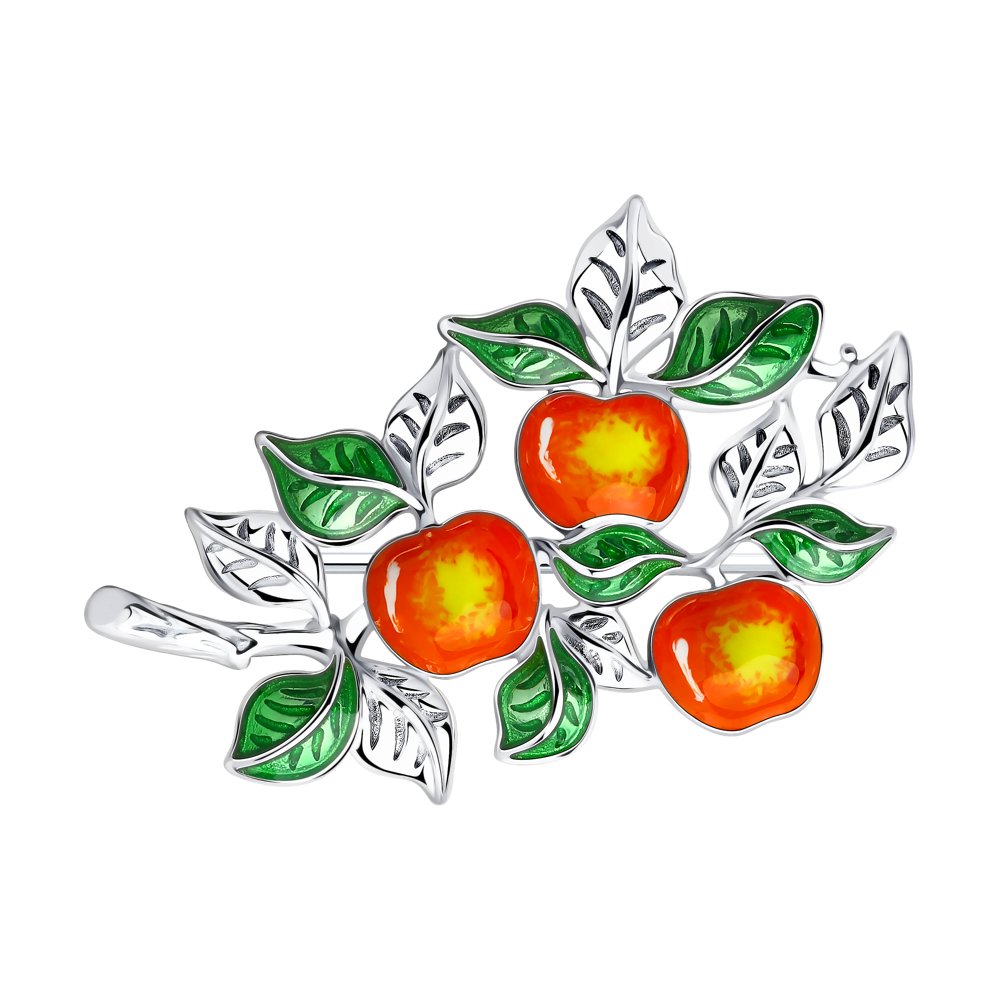 Брошь Ветвь яблони из серебра 925 пробы с эмалью от Diamant