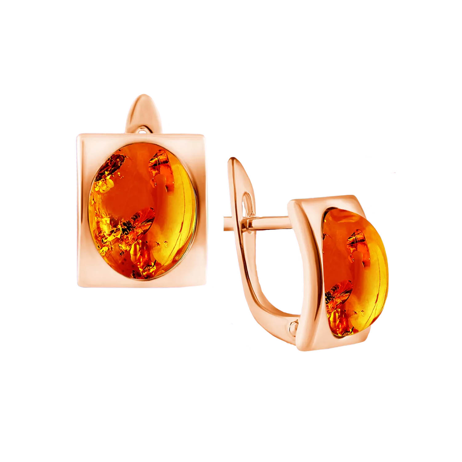 Серьги из позолоченного серебра 925 пробы, квадратные, с камнями из коньячного янтаря