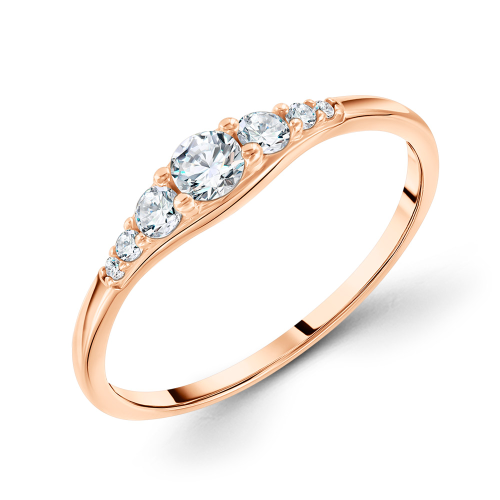 Центральная вставка – крупный фианит, который подчёркивает изысканность и роскошь дизайна, а по бокам расположены плавно уменьшающиеся камни, создающие гармоничный и сбалансированный силуэт. Такое украшение идеально подойдёт для повседневной носки, а также станет утончённым акцентом в вечернем образе.Кольцо символизирует элегантность и женственность, подчёркивая естественную красоту своей обладательницы.