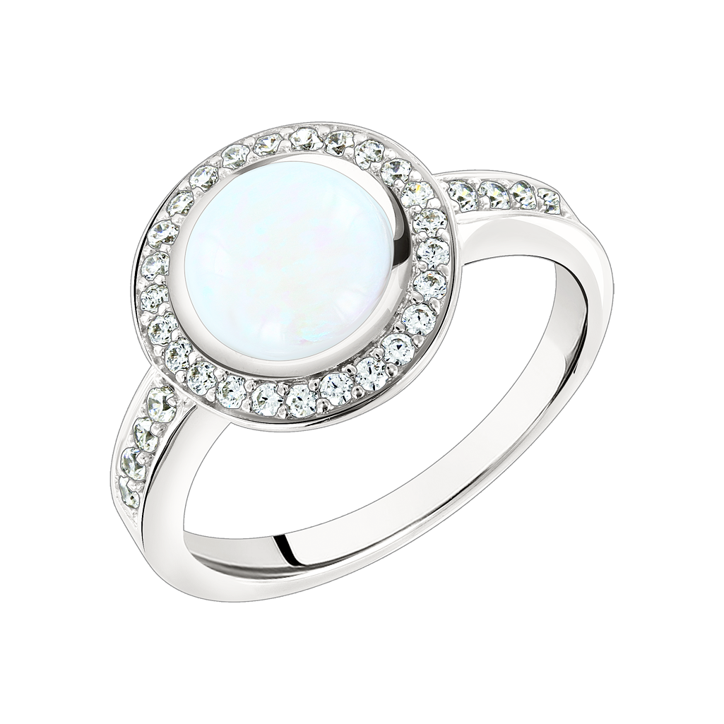 Элегантное женское кольцо из серебра 925 пробы с опалом HTS Ø ≈ 9 мм и фианитами