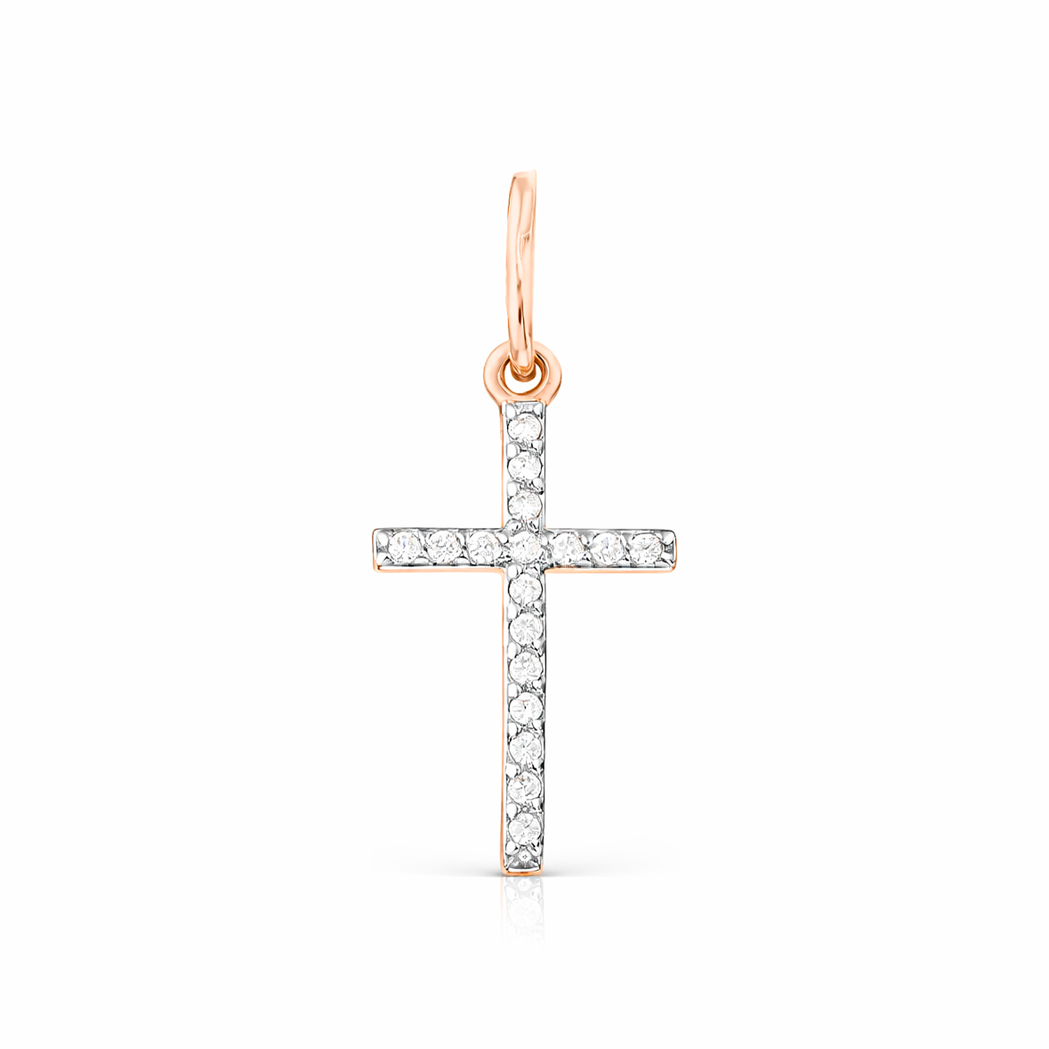 Элегантный крестик из красного золота 585 пробы с фианитами, высота ≈ 21 мм