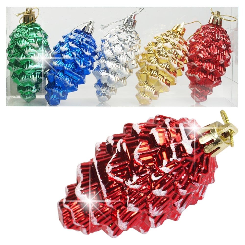 Елочные украшения разноцветные сосновые шишки набор из 5, 8 см