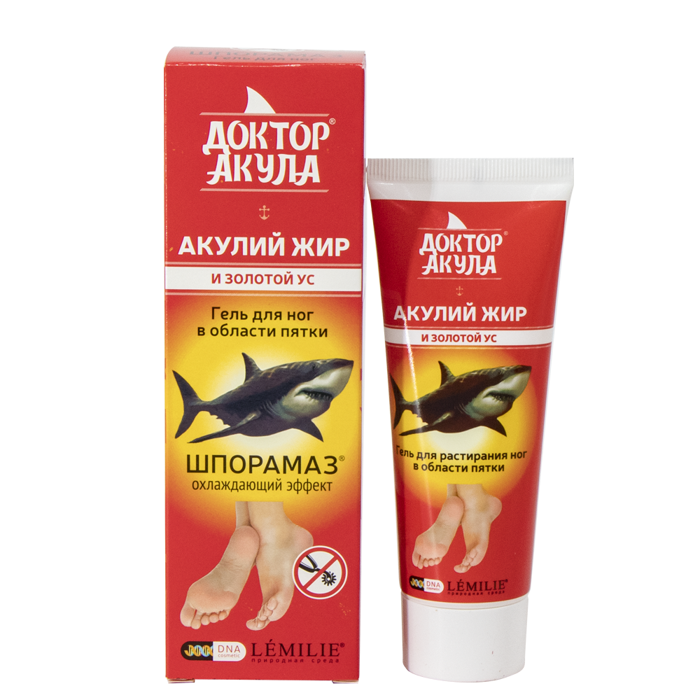 Крем для ног при пяточной шпоре «Акулий жир и Золотой ус» обладает улучшенной формулой за счет обогащения состава йодсодержащими экстрактами морских водорослей: ламинарии и фукуса. Акулий жир и экстракты золотого уса, лавра, меда и ламинарии обладают размягчающим и восстанавливающим свойством. Благодаря муравьиной кислоте, камфоре, экстракту перча и провитамину РР крем оказывает мягкий согревающий эффект.