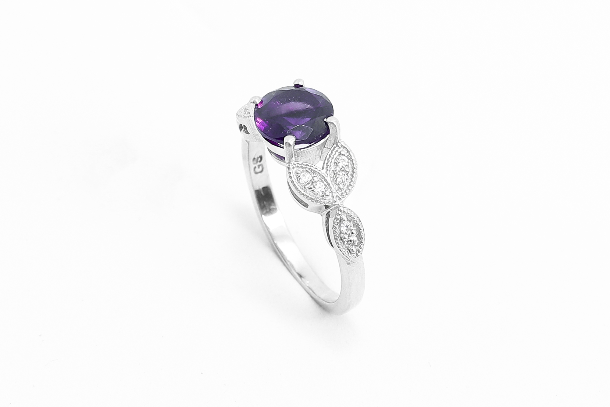 - 1х Серебряное кольцо 925 пробы с аметистом и фианитами.
