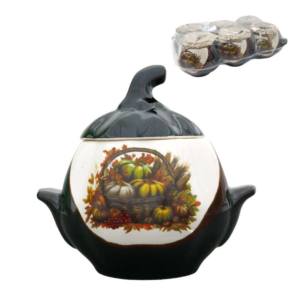 Горшочек для запекания "Тыква" с декором из тыквы - натуральный овощной вид для ароматных блюдОкунитесь в мир нежной кулинарии с этим очаровательным набором из 6 горшочков! Каждый керамический горшочек объемом 0,75 литра впечатляет натуралистичным дизайном тыквы, который придаст деревенский шарм вашей кухне. Высококачественная керамика обеспечивает идеальное распределение тепла для приготовления сочных тушеных блюд, хрустящей корочки и ароматного тушеного мяса. Практичные ручки обеспечивают безопасное использование, а привлекательный дизайн делает каждый горшок мгновенным украшением сервировки.