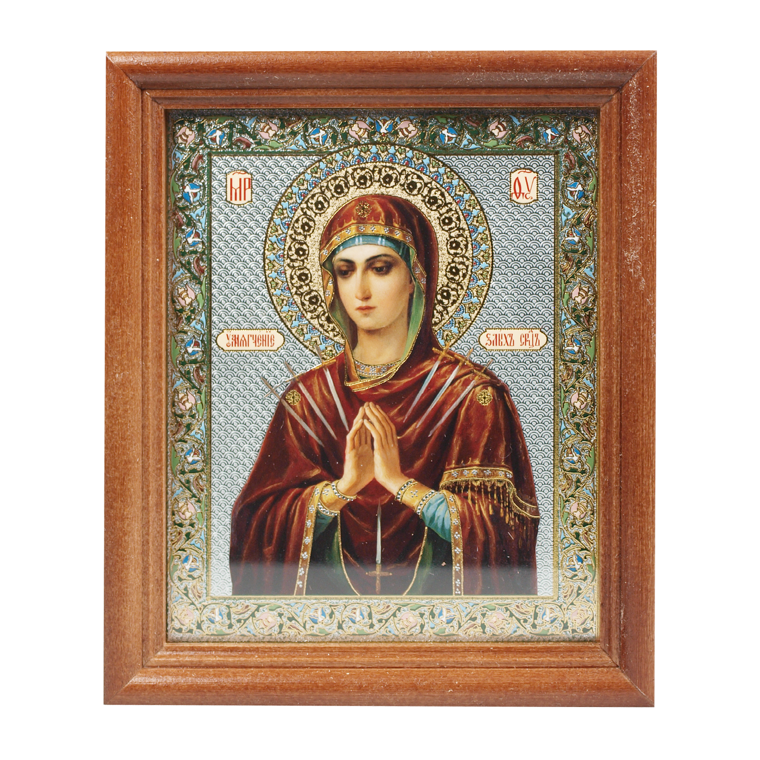 Икона "Умягчение злых Сердец" Деревянная рамка, двойное тиснение, под стеклом, 11 х 13 см