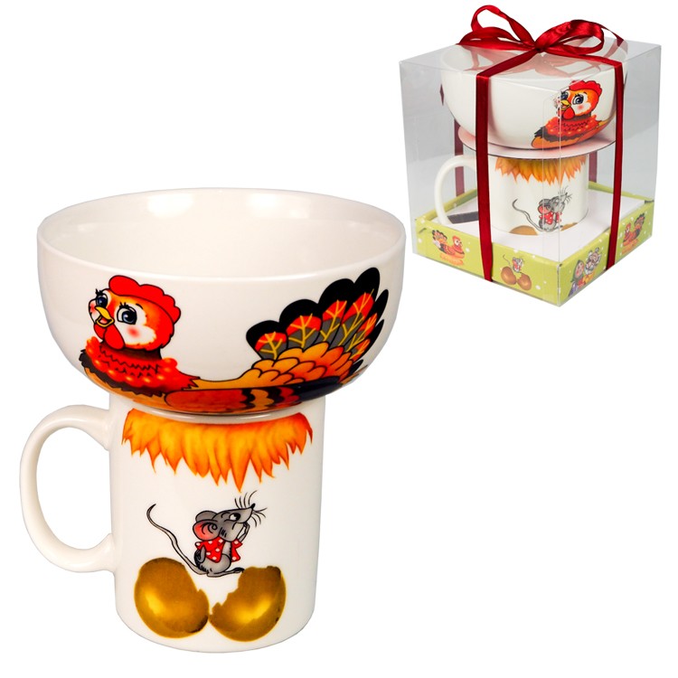 Интерактивный детский набор - Сказка "Курочка ряба", кружка 380 мл, пиала 600 мл