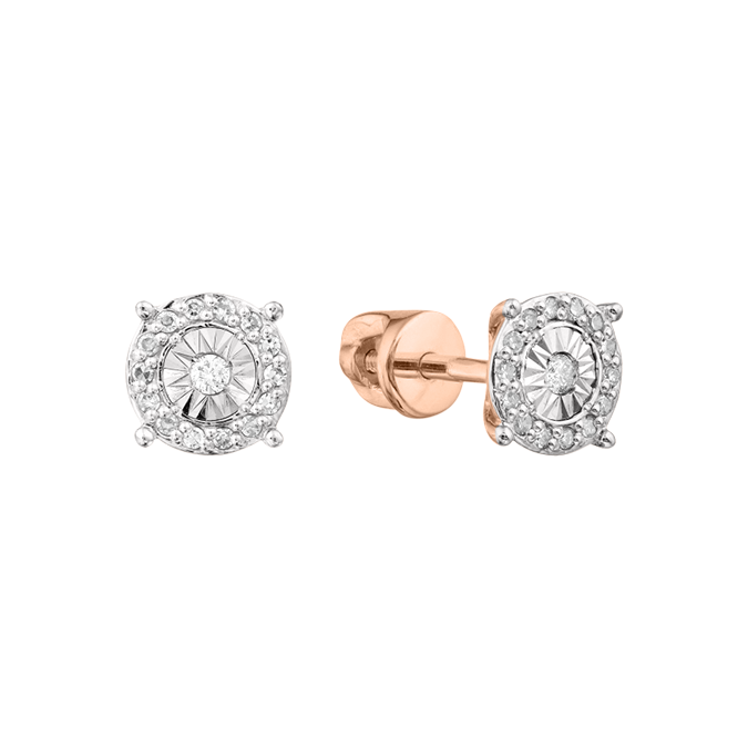Яркие серьги - пусеты из красного золота 585 пробы, с бриллиантами 0,10 ct. WSI, диаметром ≈ 6 мм