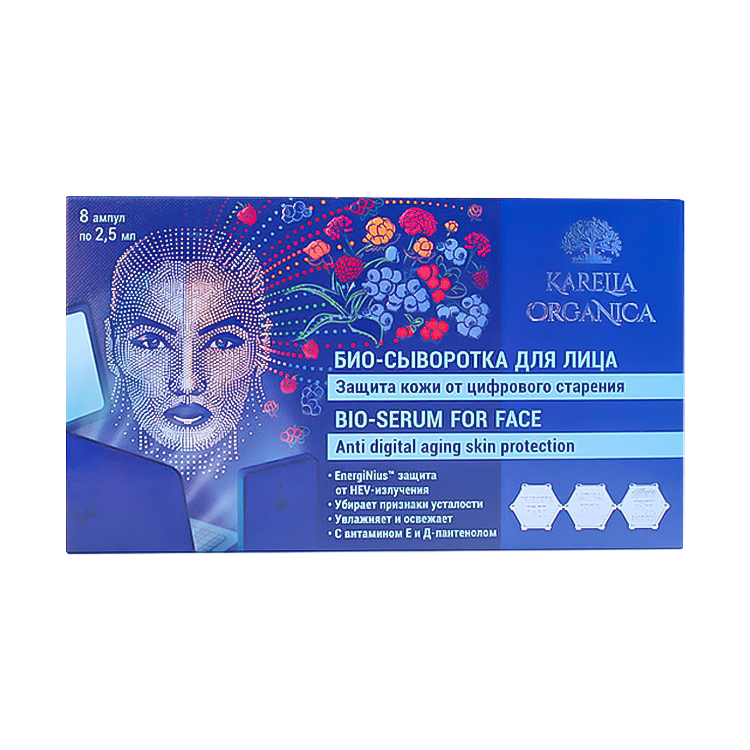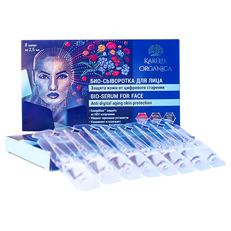 Karelia Organica Био-сыворотка для лица - защита кожи от цифрового старения, 8 x 2,5 мл