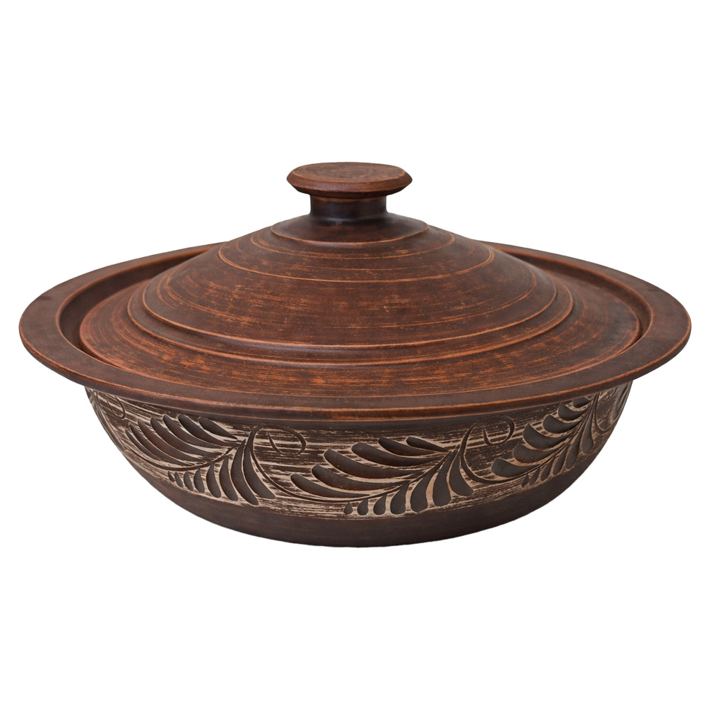 Керамическая жаровня из натуральной глины с крышкой, 3 л, Ø 320 мм