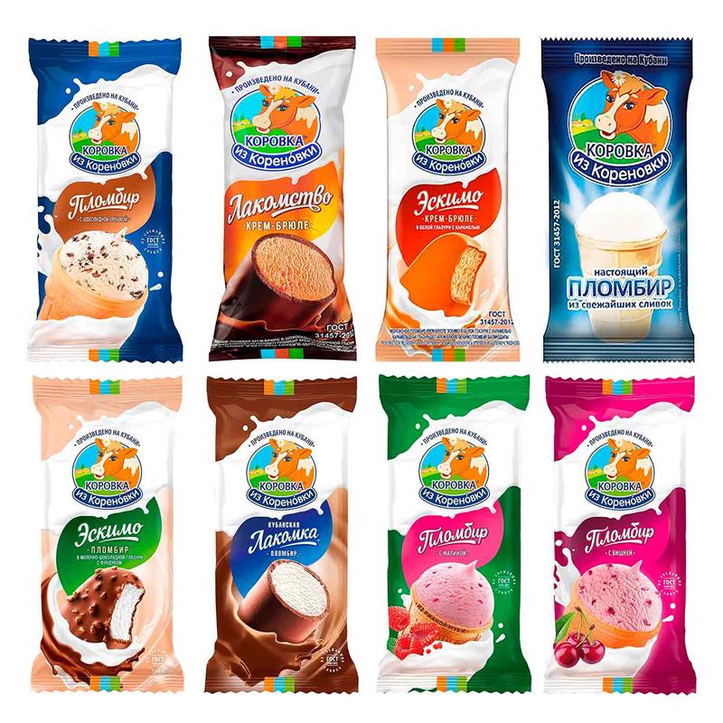 - 8 тщательно отобранных сортов самых популярных видов мороженого "Коровка из Кореновки"