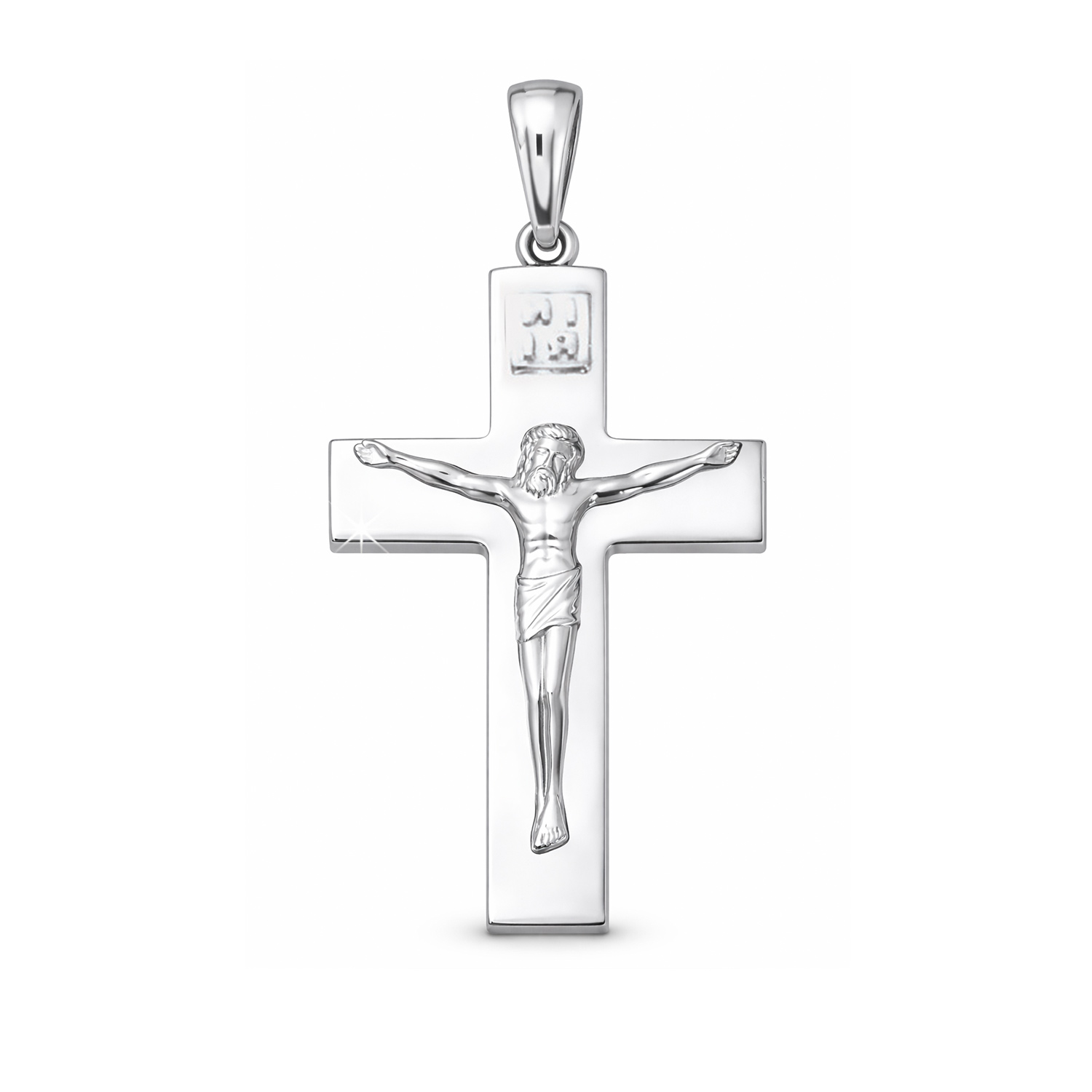 Заметный большой нательный крест с лаконичным дизайном отлично подойдет мужчинам всех возрастов. В верхней части креста изображены латинские буквы «INRI» — аббревиатура латинской фразы IESUS NAZARENUS REX IUDAEORUM, то есть «Иисус Назарянин, Царь Иудейский». Согласно Новому Завету, первоначально фраза была написана на табличке Понтием Пилатом и прикреплена к кресту, на котором распяли Христа. Такой четырехконечный или латинский крест были распространены в первые века христианства. Ранние христиане, отталкиваясь от языческих воззрений, сделали крест главным символом своего мировосприятия. Крест олицетворял идею спасения, возрождения к новой жизни через муки и страдания. Из символа древнеримской казни крест превратился в знак триумфа и победы. Ведь без смерти не было бы и воскресения Иисуса.GPSR-Informationen