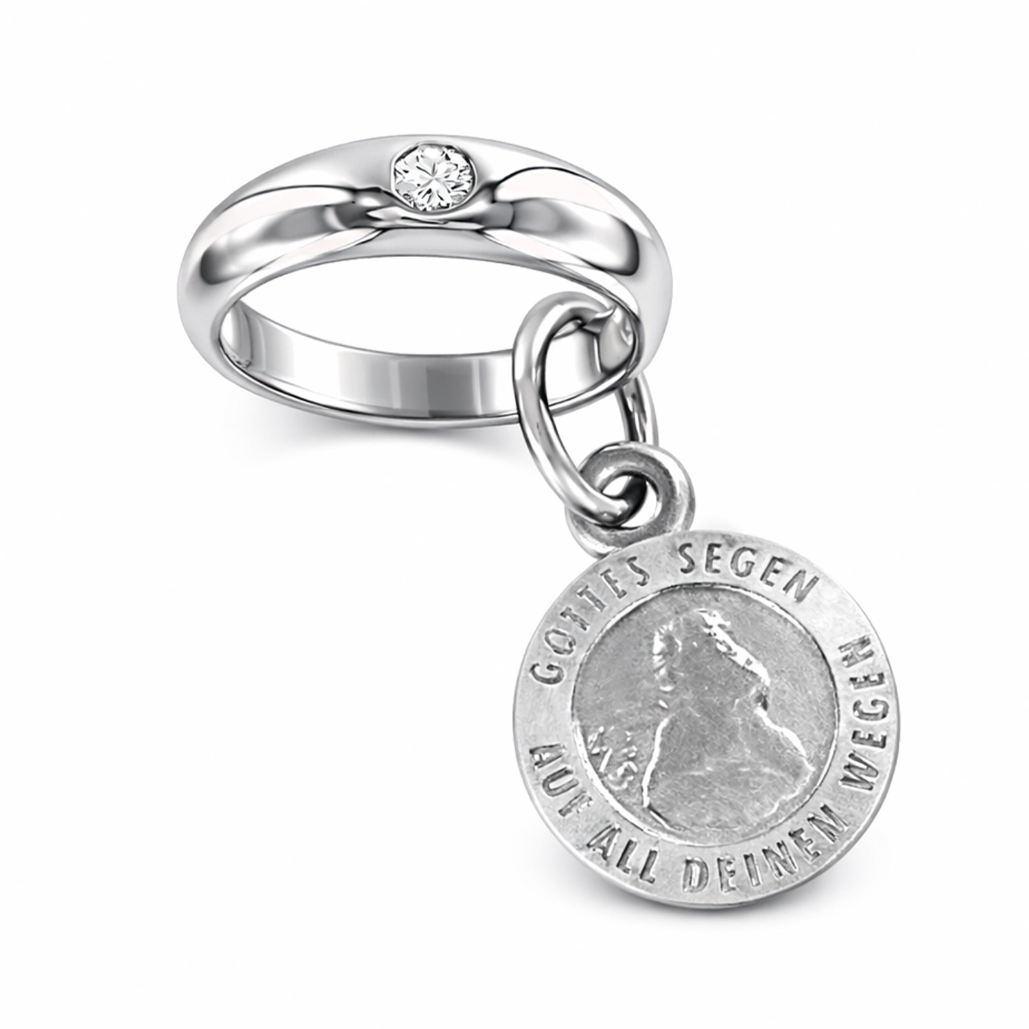 Кольцо-подвеска для крещения из серебра 925 пробы, с фианитом, подвеска с гравировкой на немецком языке "Gottes Segen auf all deinen wegen"/ "Божьего благословения на всех путях твоих".