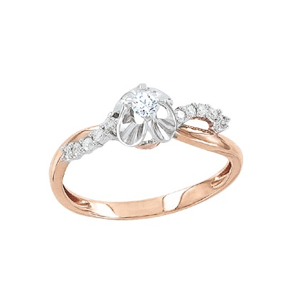 Кольцо из красного и белого золота 585 пробы с бриллиантами