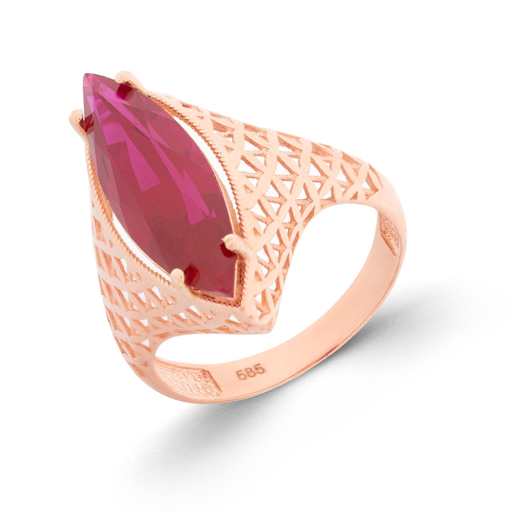 Женское кольцо из красного золота 585 пробы с рубином, размер 18 мм