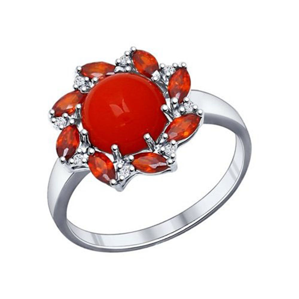 - 1 х Кольцо из серебра 925 пробы с кораллом и красными фианитами