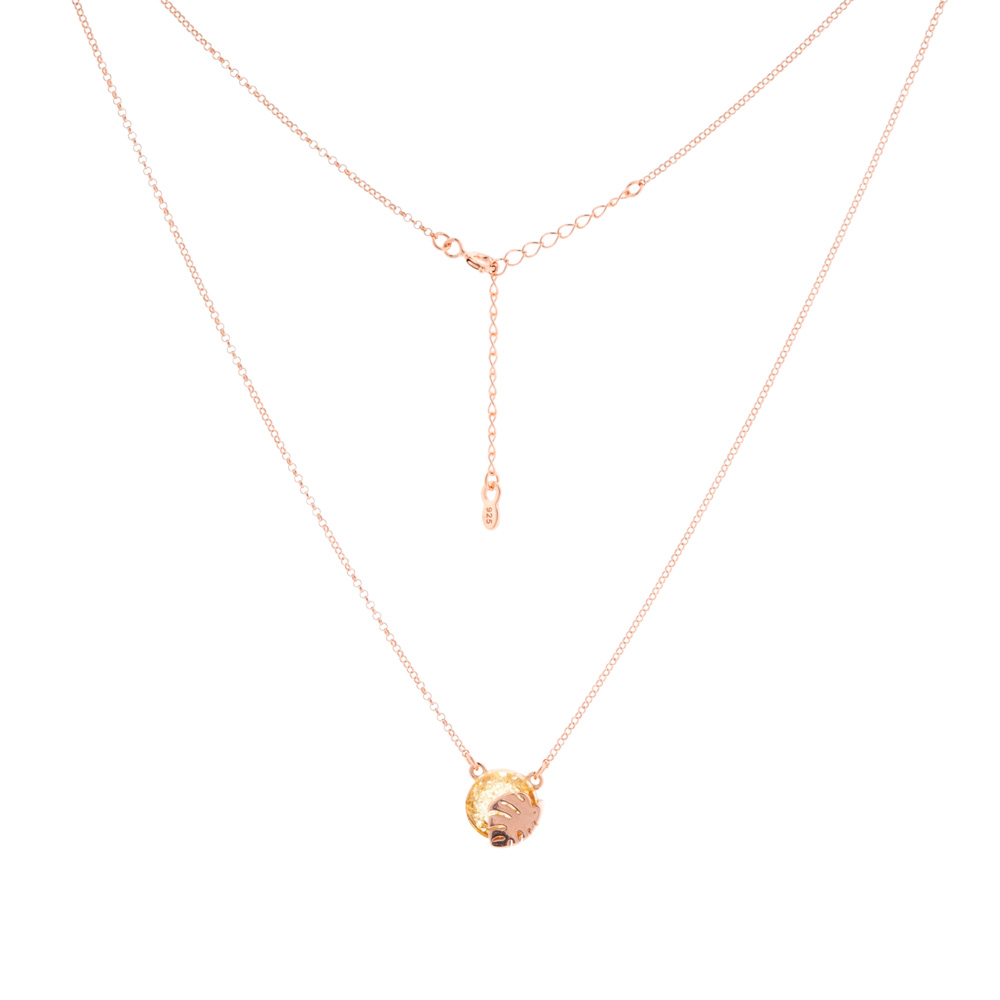 Колье из серебра 925 пробы с желтым лимонным янтарем, розовая позолота