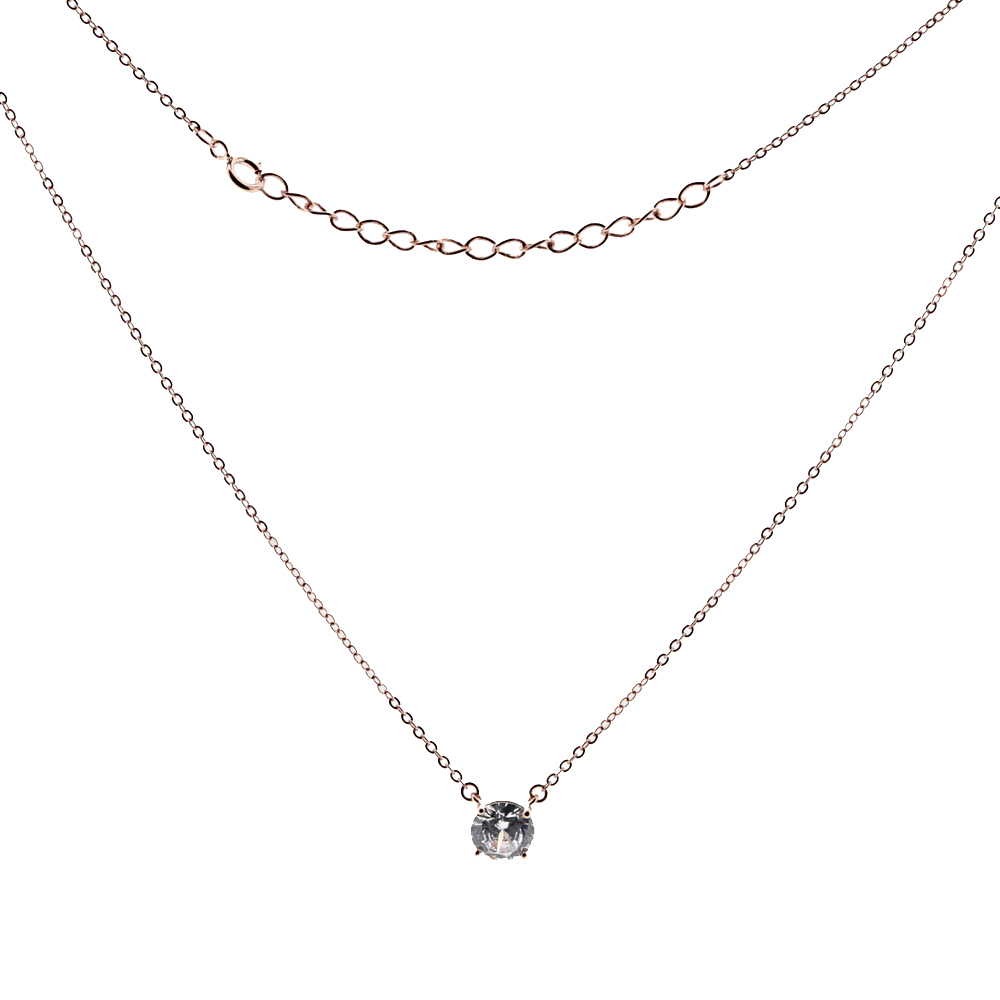 Колье из серебра 925 пробы, с круглым камнем цирконий, покрытие розовое золото