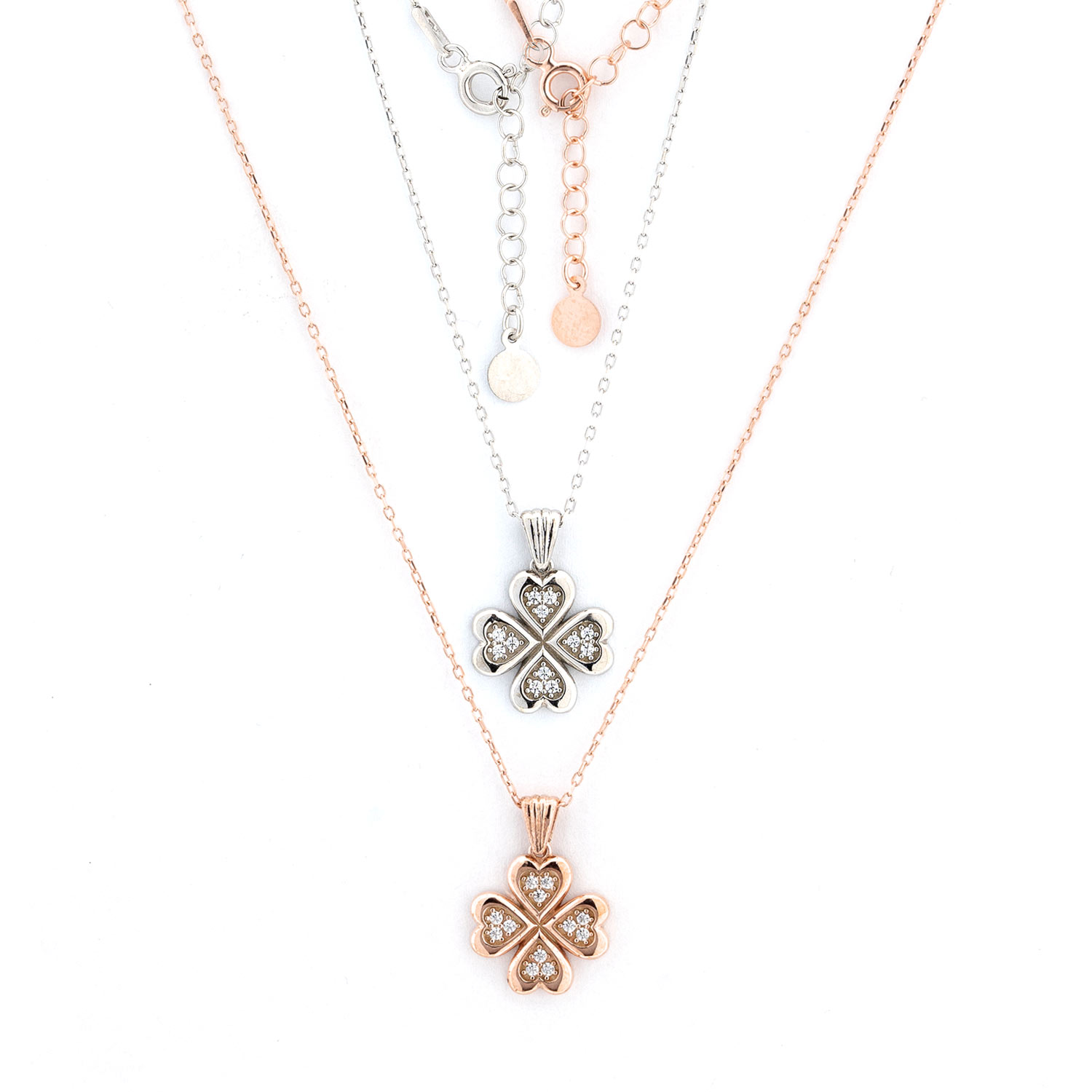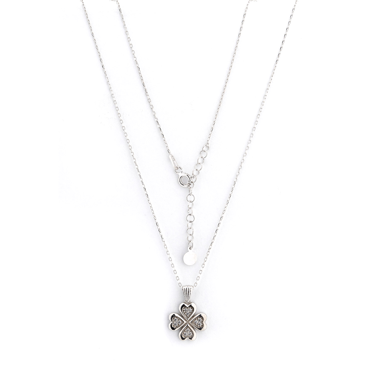Колье из серебра 925 пробы с подвеской в виде клеверного листа с фианитом Swarovski, розового или белого цвета, застежка шпрингель