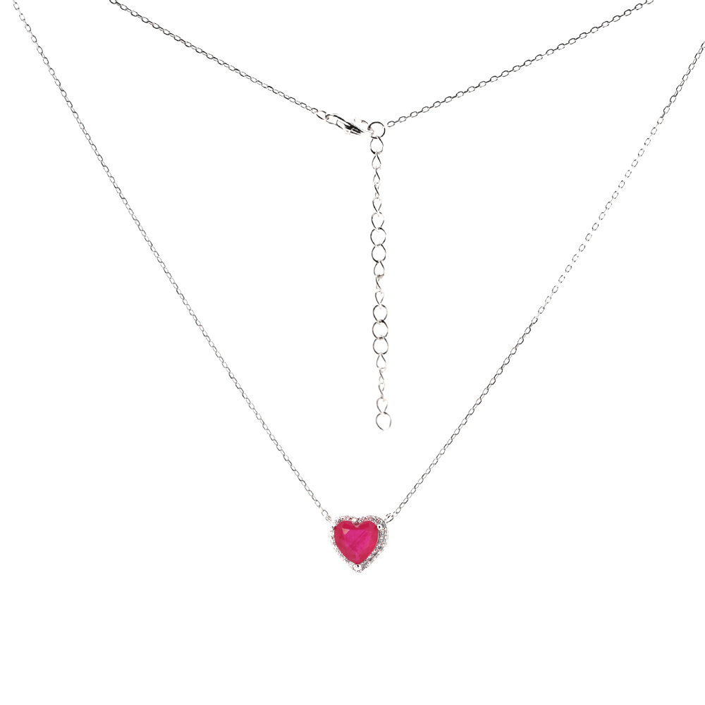 Колье из серебра 925 пробы с подвеской в виде сердца с одним красным и множеством бесцветных циркониев