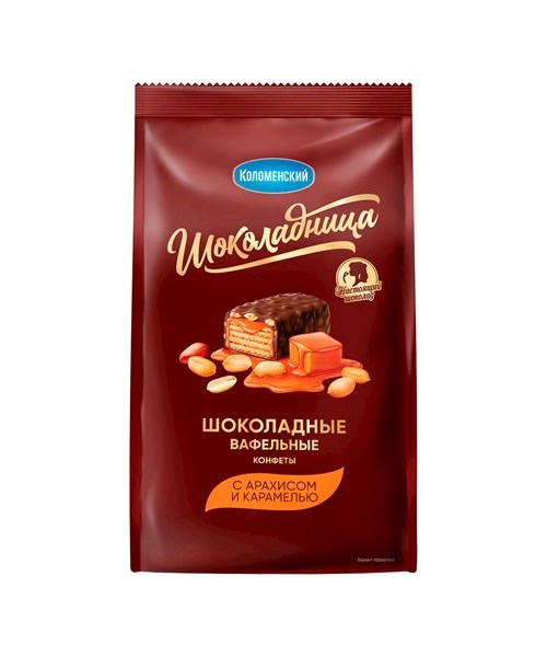 Коломенский "Шоколадница" Вафельные конфеты с арахисом и карамелью, 200г
