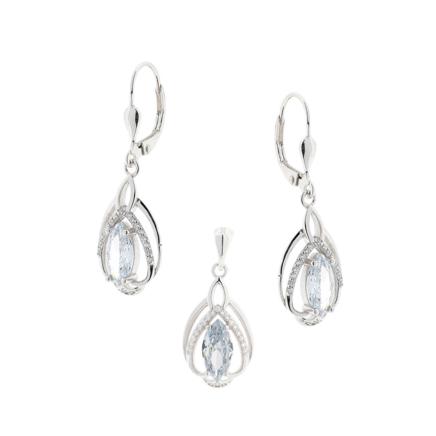 Комплект: серьги из серебра 925 пробы с фианитами и подходящая подвеска в подарок, розовая или белая