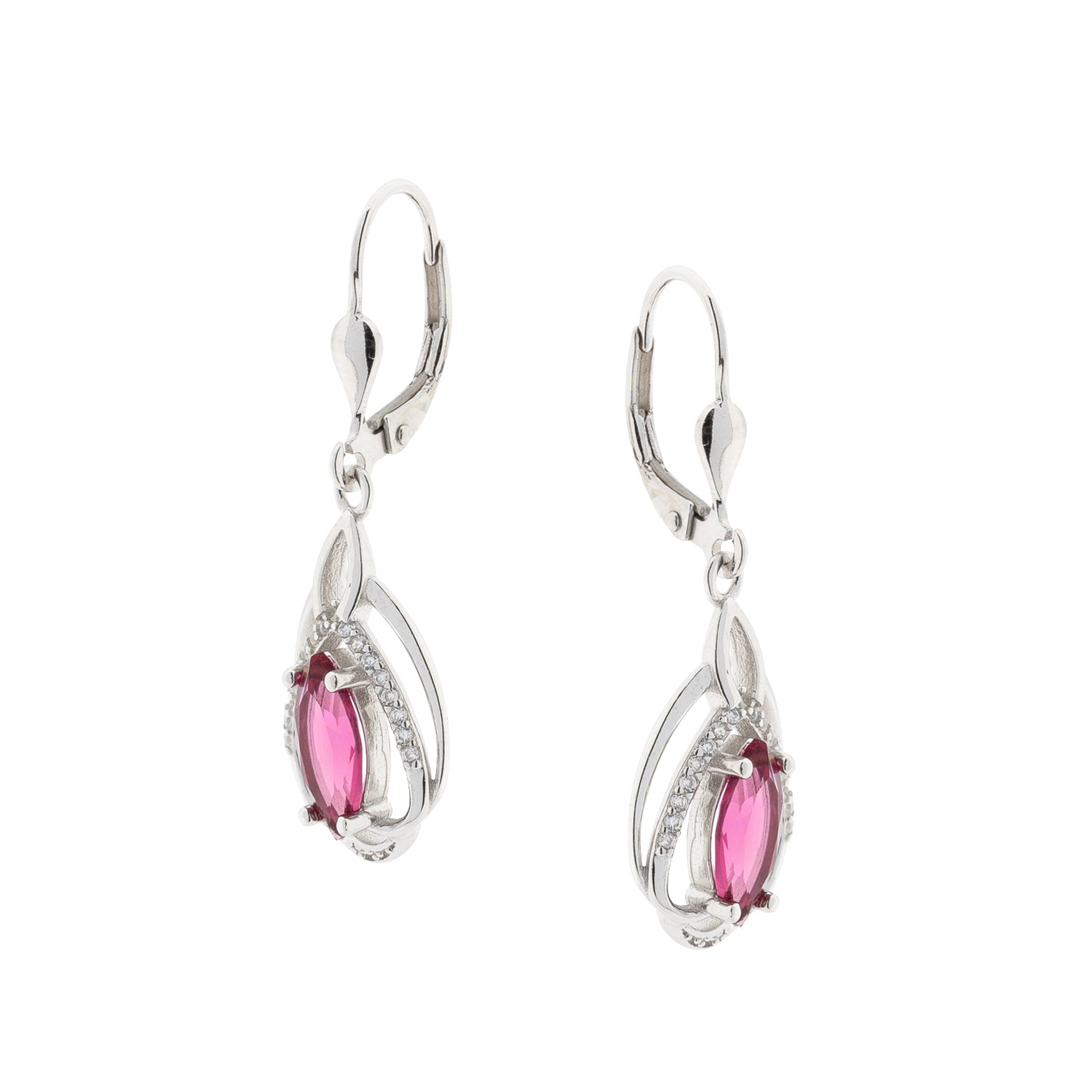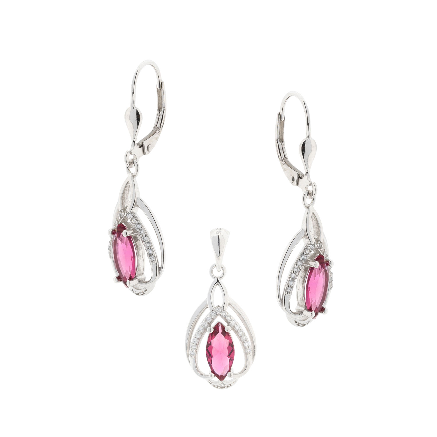 Комплект: серьги из серебра 925 пробы с розовым и бесцветными фианитами и подходящая подвеска в подарок