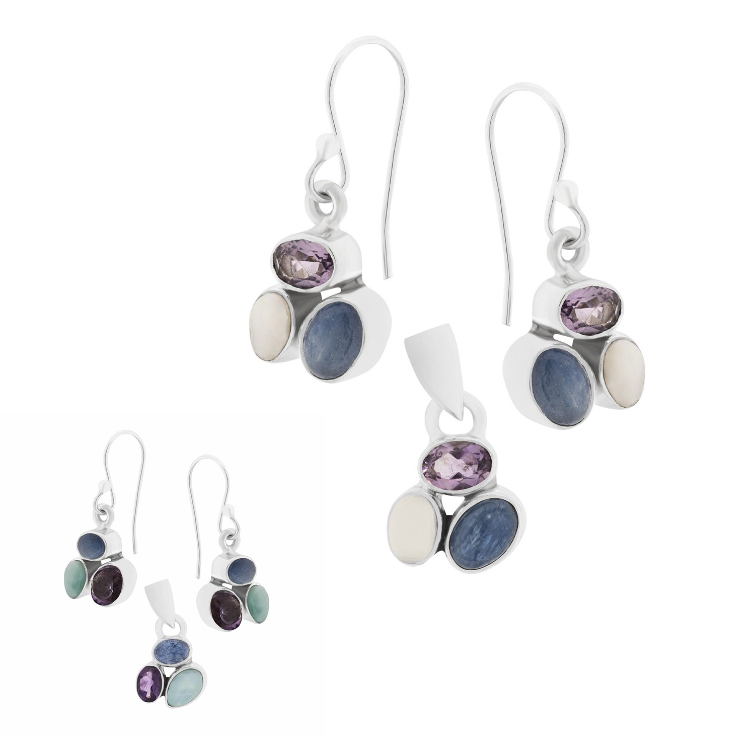 Комплект: серьги + подвеска из серебра 925 пробы с разноцветными камнями в двух цветовых вариациях