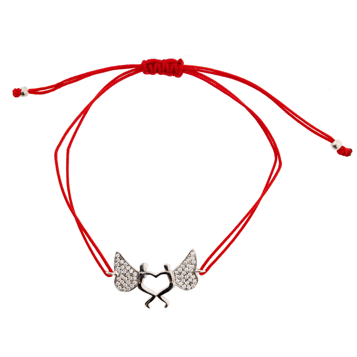 Красный браслет-нить с парой ангелов из серебра 925 пробы и фианитами