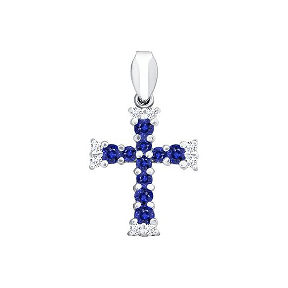 Крестик из белого золота 585 пробы с бриллиантами и сапфирами
