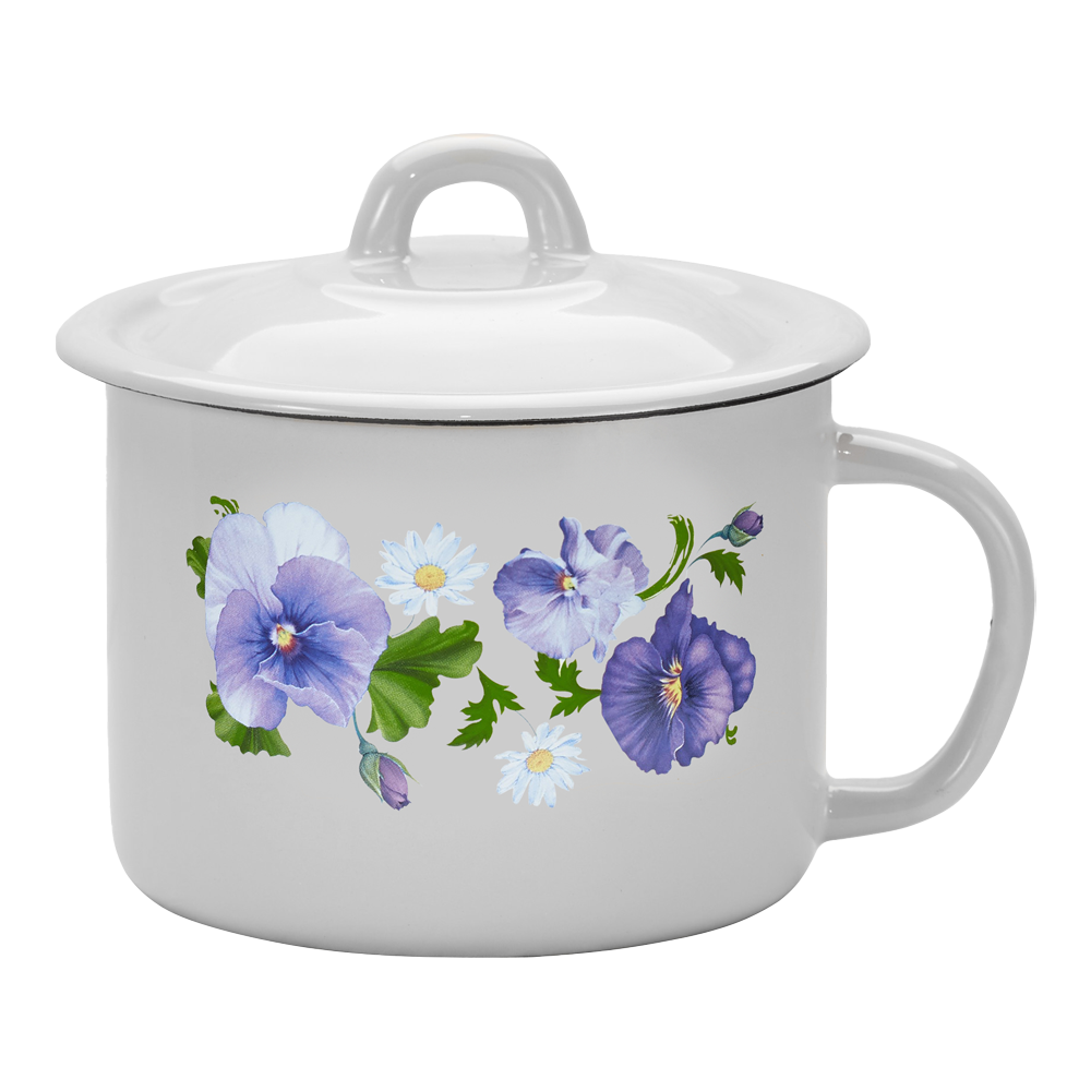 Кружка эмалированная с крышкой "Анютины глазки" 1,0 литр