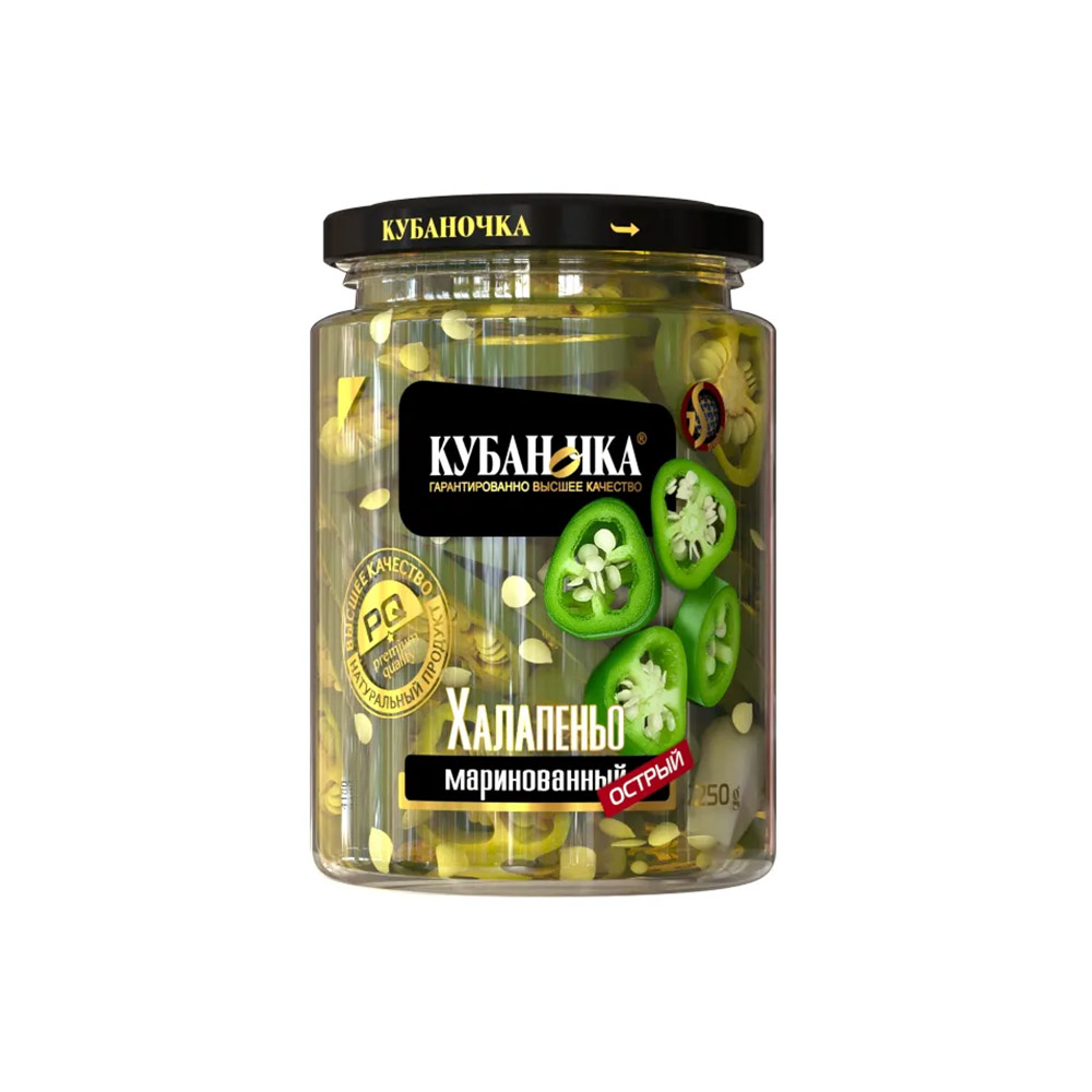 Кубаночка Перец халапенью, маринованный острый 250г, зеленый, 250 г