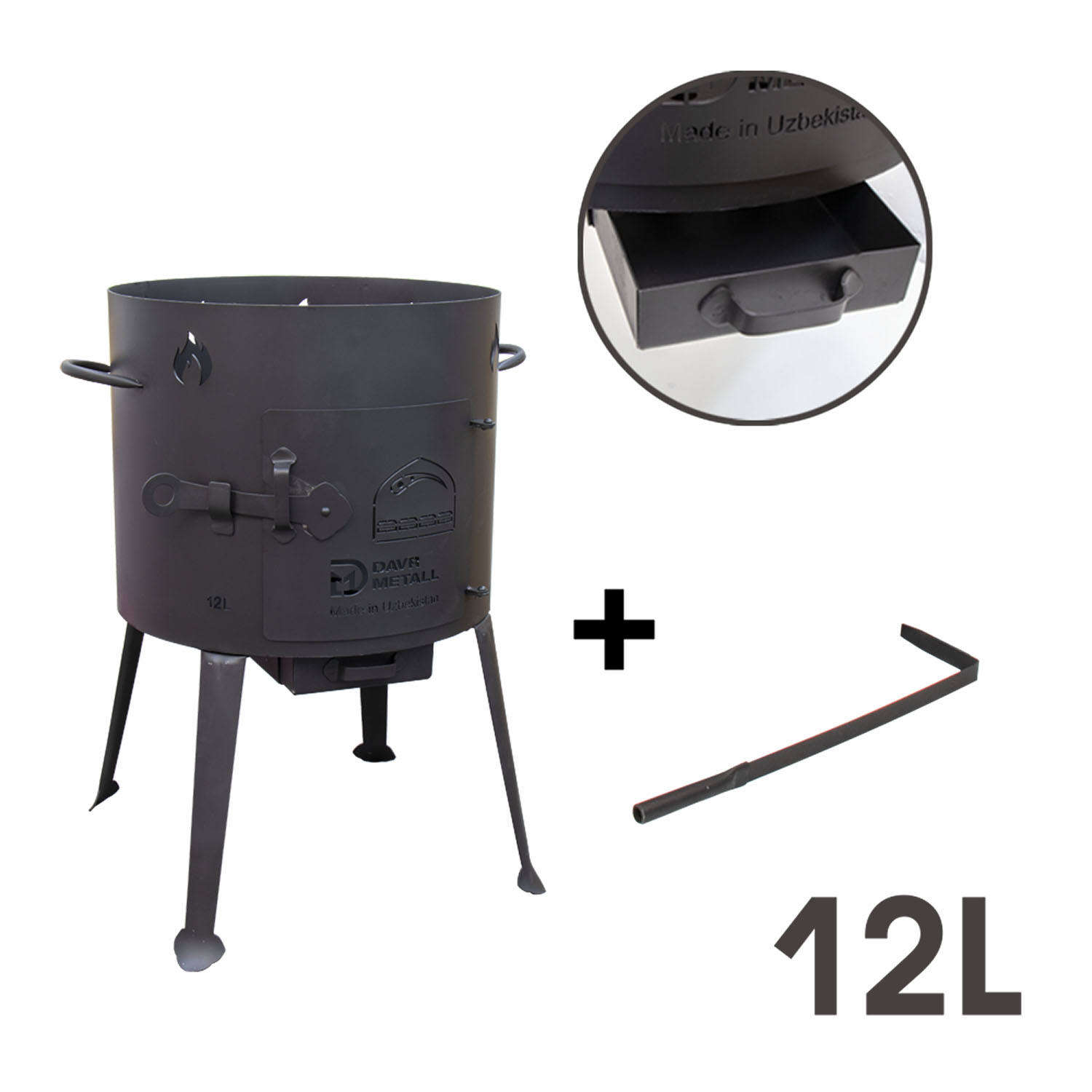 Учаг используется для быстрого и безопасного приготовления пищи в казане или котелке, так как огонь разжигается в учаке и может полностью охватить жар котелка.Толстые стенки учака гарантируют, что изделие не погнется во время использования.