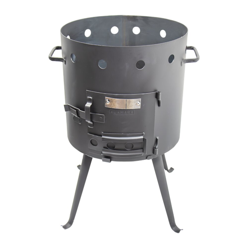 Учаг используется для быстрого и безопасного приготовления пищи в казане или котелке. Ведь огонь разжигается в учаге и может полностью охватить жар варочного котла.Толстые стенки учака гарантируют, что изделие не согнется во время использования.