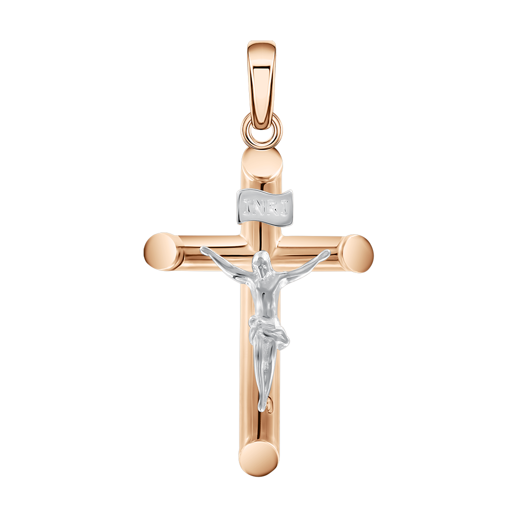Кулон Крест с распятием из красного/белого золота 585 пробы, высота около 27 мм