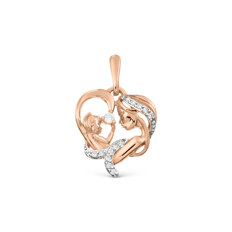 Этот трогательный кулон из красного золота 585 пробы олицетворяет нежную связь между матерью и ребёнком — символ безусловной любви и заботы.Фигуры, выполненные с особым вниманием к деталям, обрамлены стилизованным сердцем и украшены сверкающими фианитами, придающими изделию изысканный блеск. Плавные линии и тёплый оттенок золота подчёркивают эмоциональную глубину украшения, делая его идеальным подарком на День матери, рождение ребёнка или как выражение благодарности.