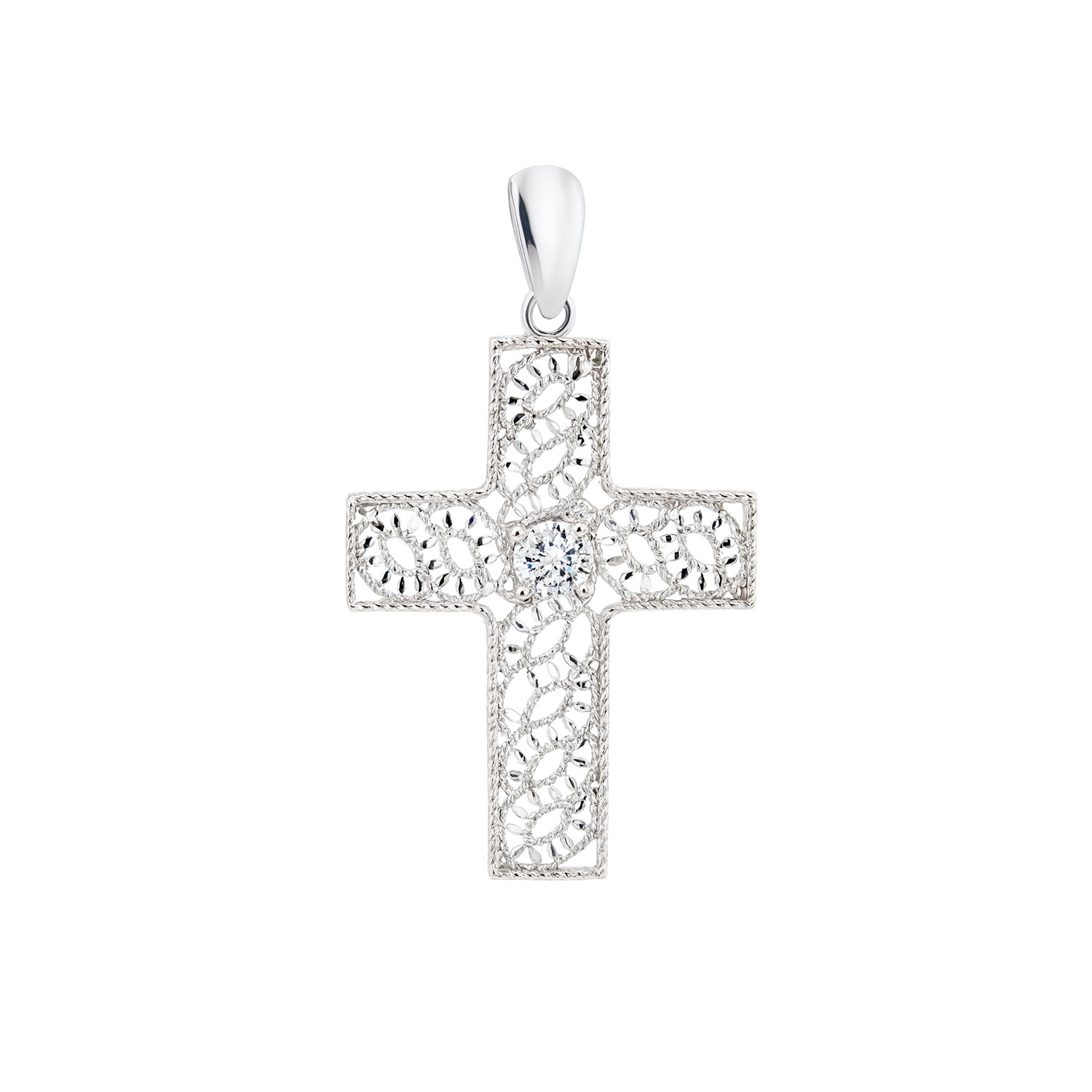 Кулон в виде креста из серебра 925 пробы с фианитами в трех цветовых вариантах