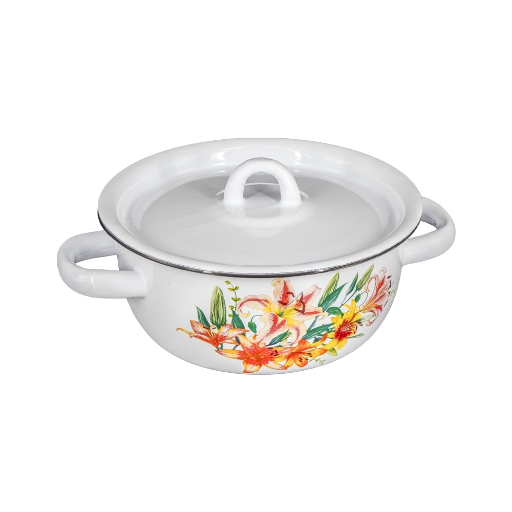 Лысьвенские эмалированные кастрюли с узором в виде лилий отличаются не только привлекательным внешним видом, но и высокой функциональностью